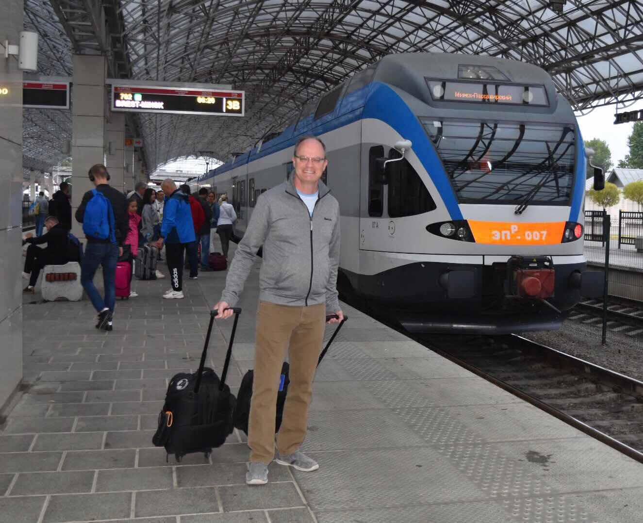 About to board Belarusian Railways express train from Brest to Minsk, departing 6:20AM. A wonderful train, and well used by the people of Brest to quickly get to the capital.